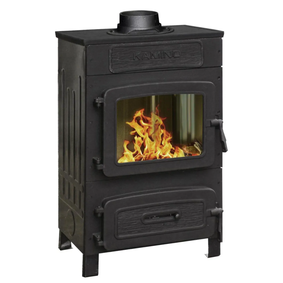 Mit einer Wärmeleistung von 6 kW wird das Modell geliefert. An diesem Ofen befindet sich der Anschluss für das Rohr oben. Das Gerät ist 44,4 cm breit und 36,7 cm tief.