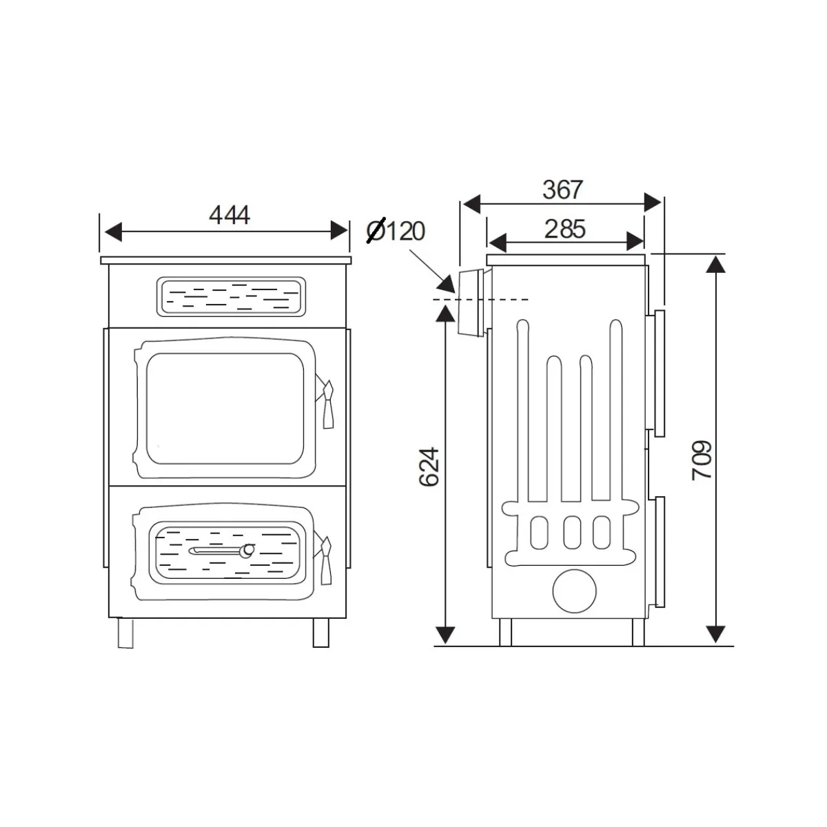 Für Räume mit einer Kubikmetergröße von bis zu 116 m³ ist der Ofen geeignet, denn er verfügt über eine Wärmeleistung von 8 kW. Der Rohranschluss befindet sich hinten. Mit den Maßen von 44,4×70,9×36,7 cm (BxHxT) ist dieser Ofen so konzipiert, dass er in den meisten Räumen mühelos einen Standort finden sollte.