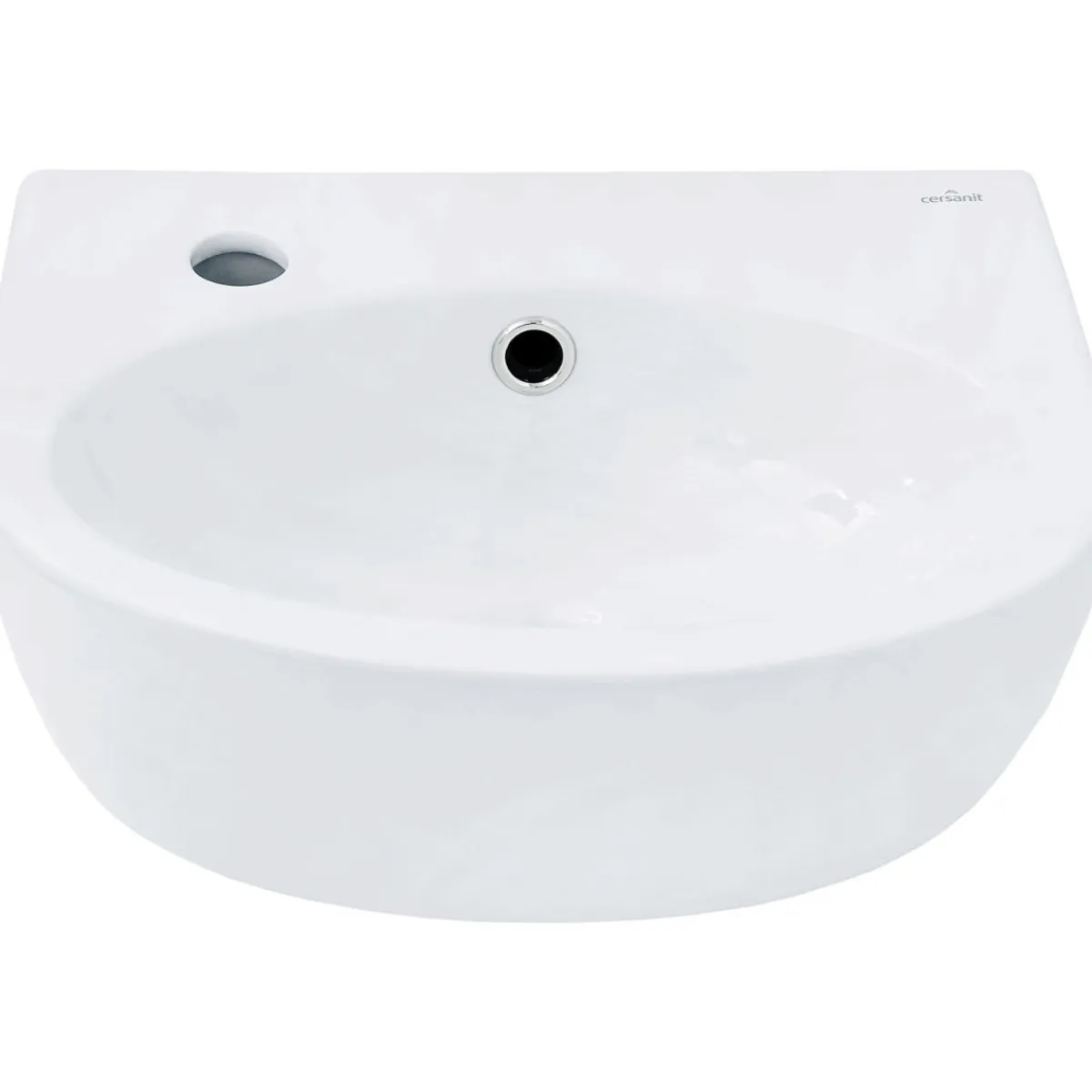 Das Waschbecken Montego 40 cm Hahnloch links von CORNAT ist die perfekte Wahl für Ihr Badezimmer oder Gäste-WC. Mit seiner runden Form und der weißen Farbe fügt es sich nahtlos in jedes Interieur ein. Das verchromte Überlaufrosette sorgt für einen eleganten Look und das Hahnloch links bietet Ihnen eine bequeme Handhabung.