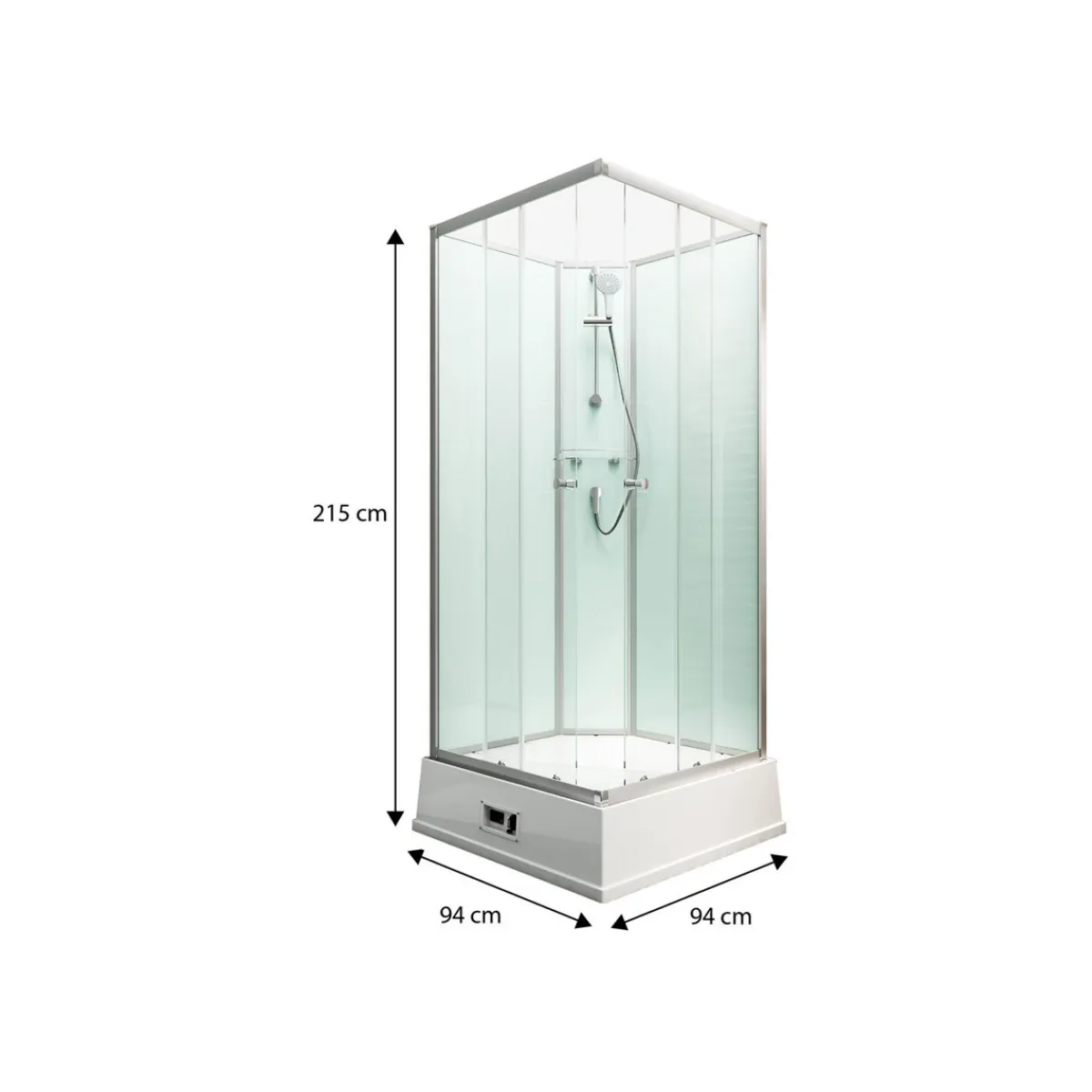 | Lieferumfang: | Duschkabine, Armatur, Duschwanne, Ablaufgarnitur, Boiler |