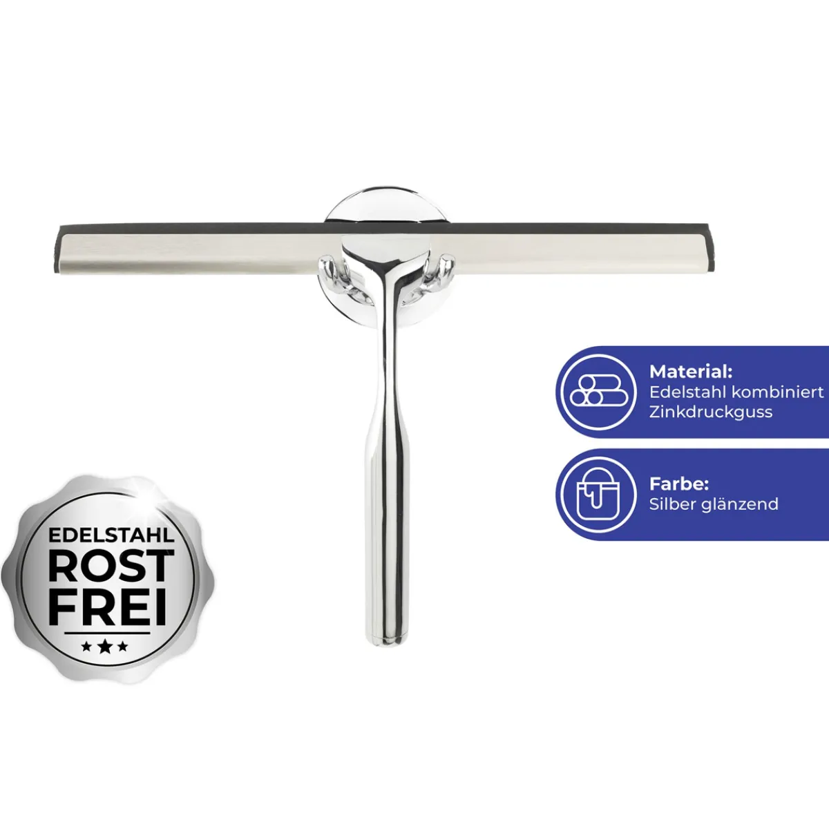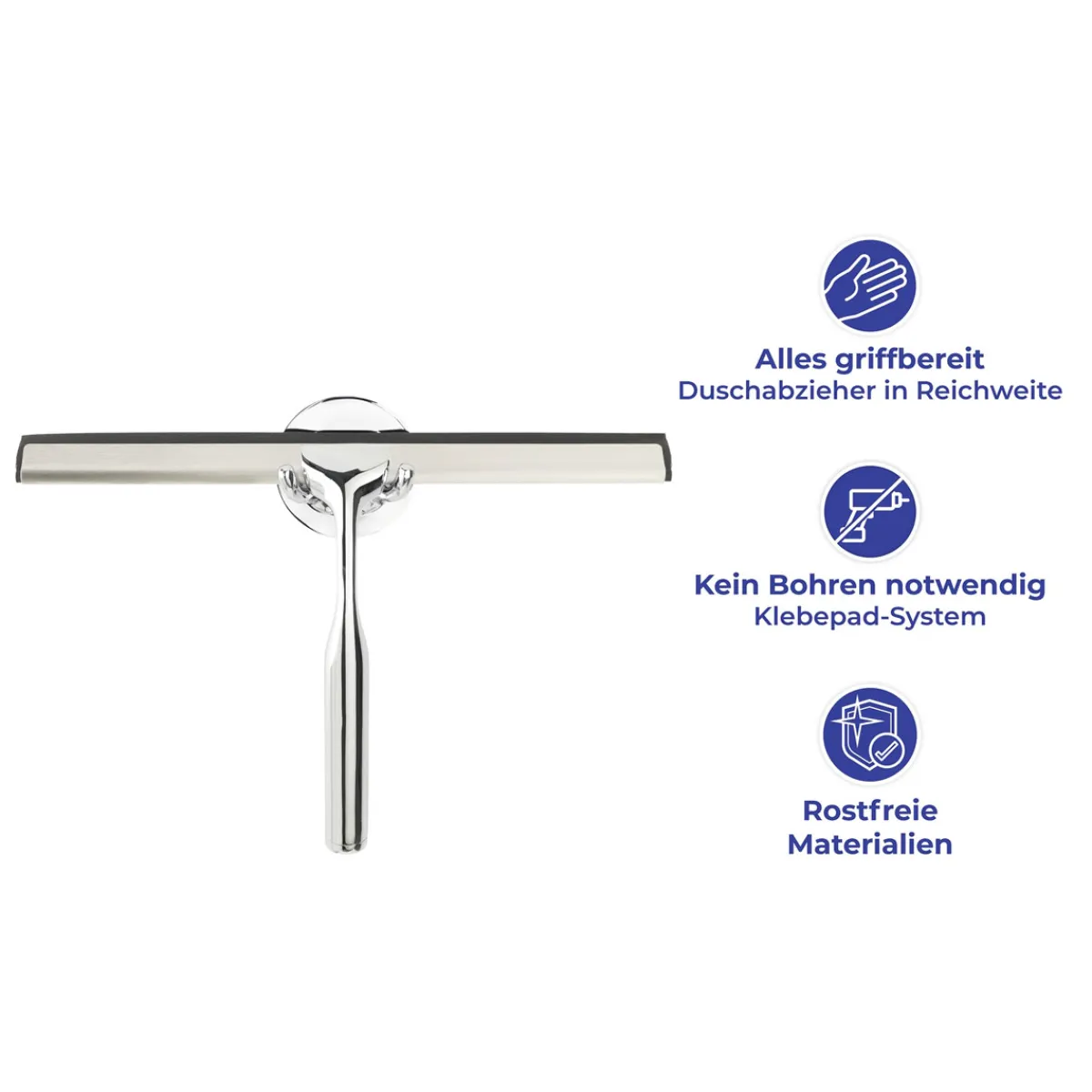 - Lieferumfang: Duschabzieher, Turbo-Loc Klebehaken, Halter, Ersatzlippe
