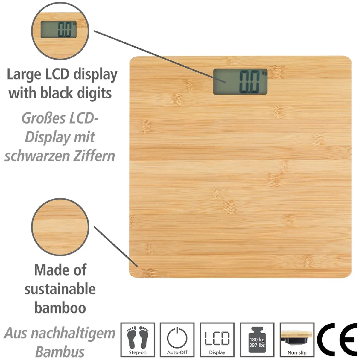 Wenko Wenko Personenwaage Bambusa digital bis 180 kg