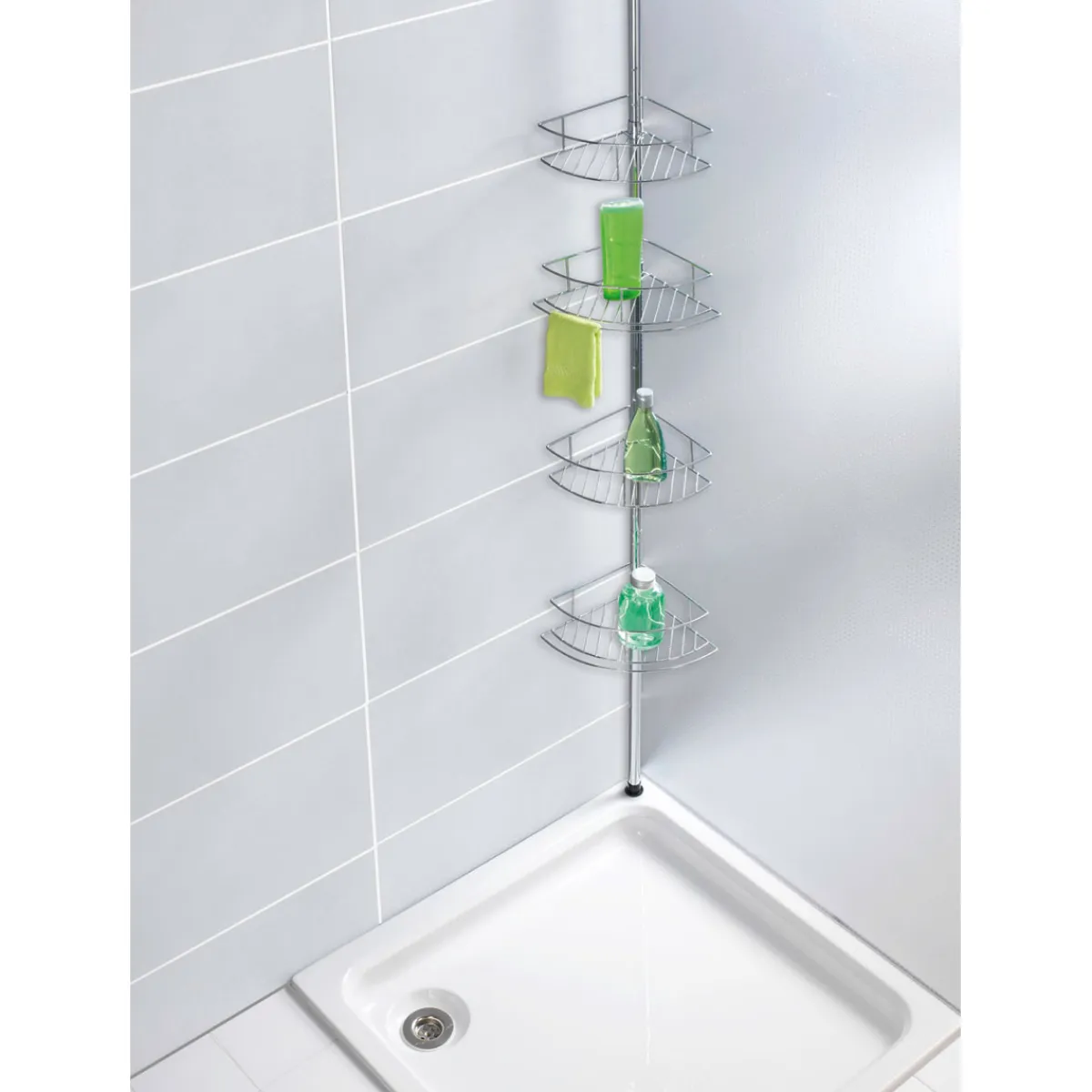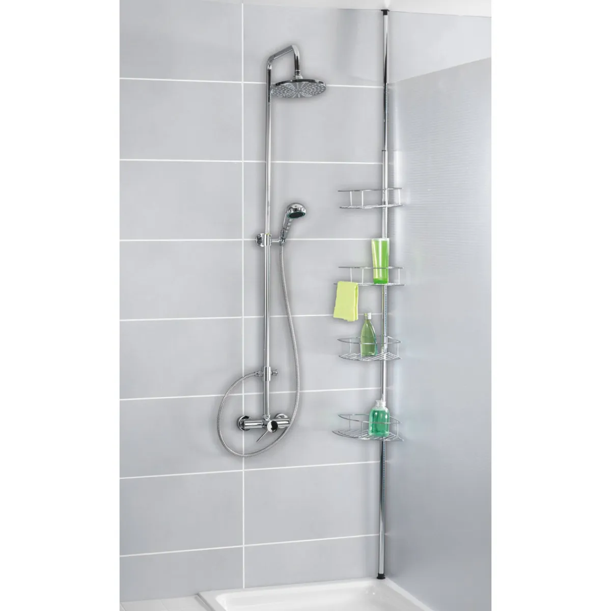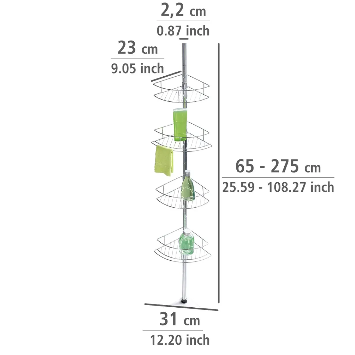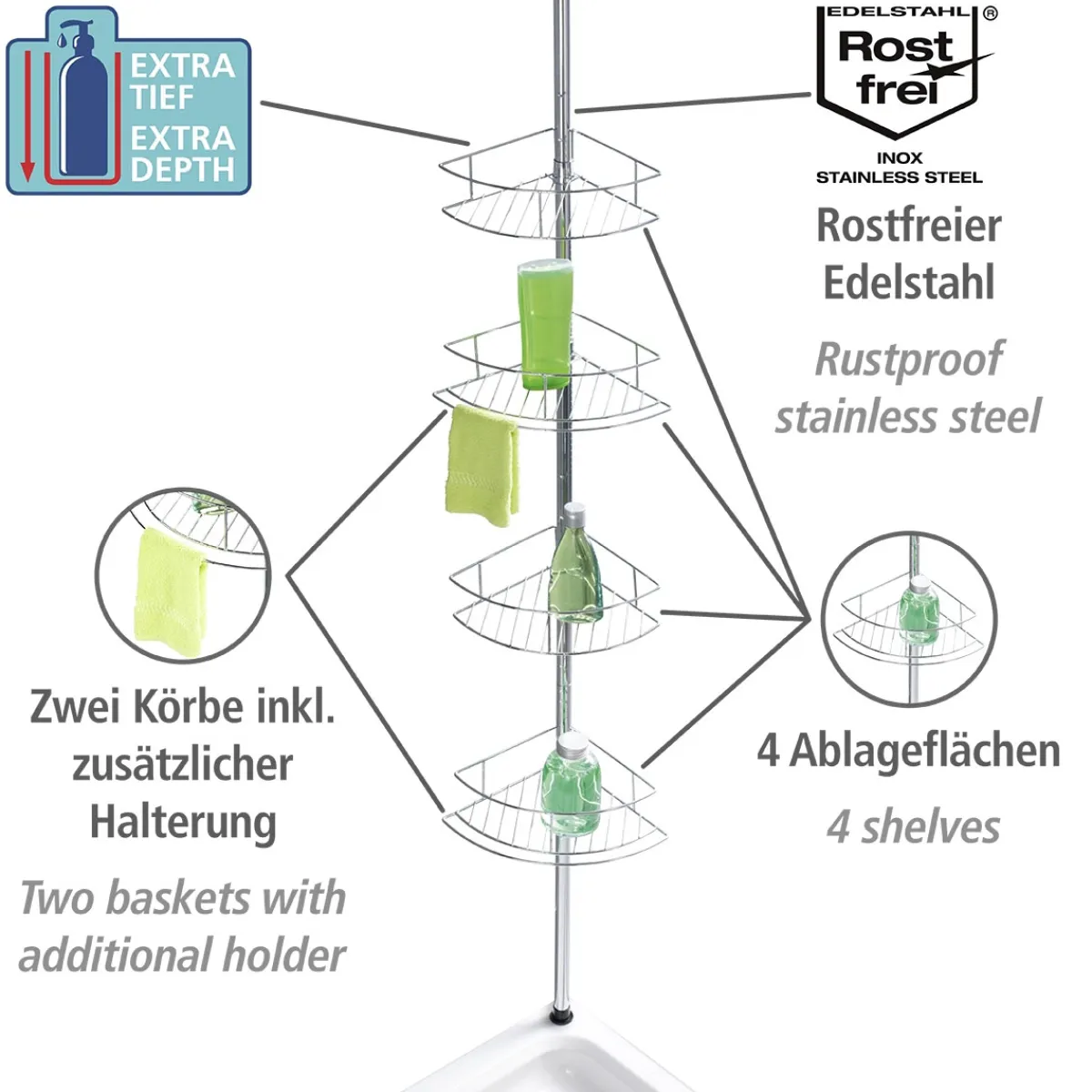 - Lieferumfang: Teleskopstange, 4 Ablagekörbe