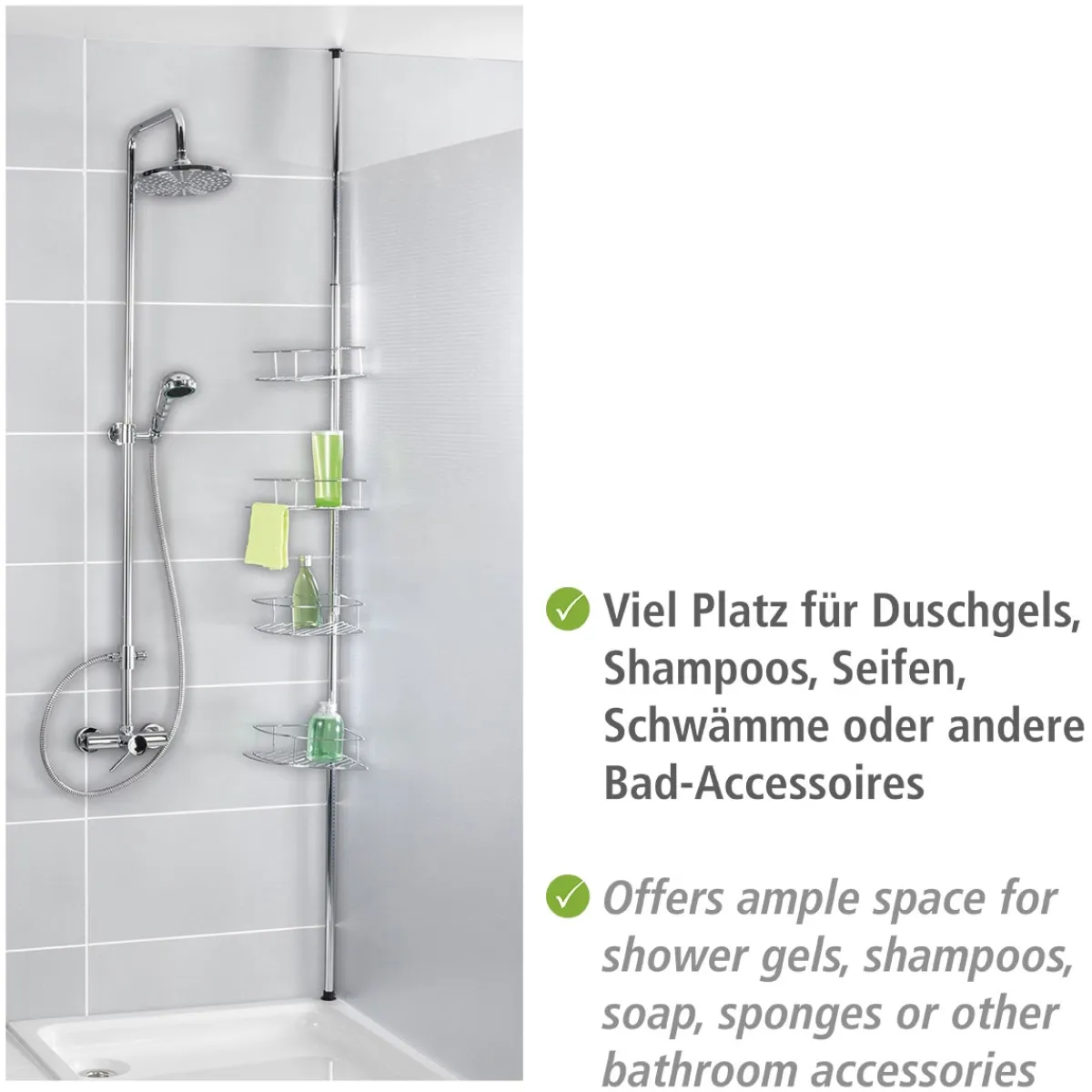 - Geeignet für Shampoo, Duschgel, Waschlappen etc.