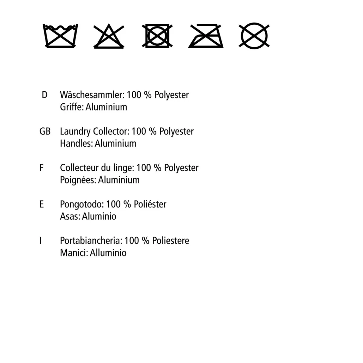 - Material: Wäschesammler – 100 % Polyester, Griffe – Aluminium
