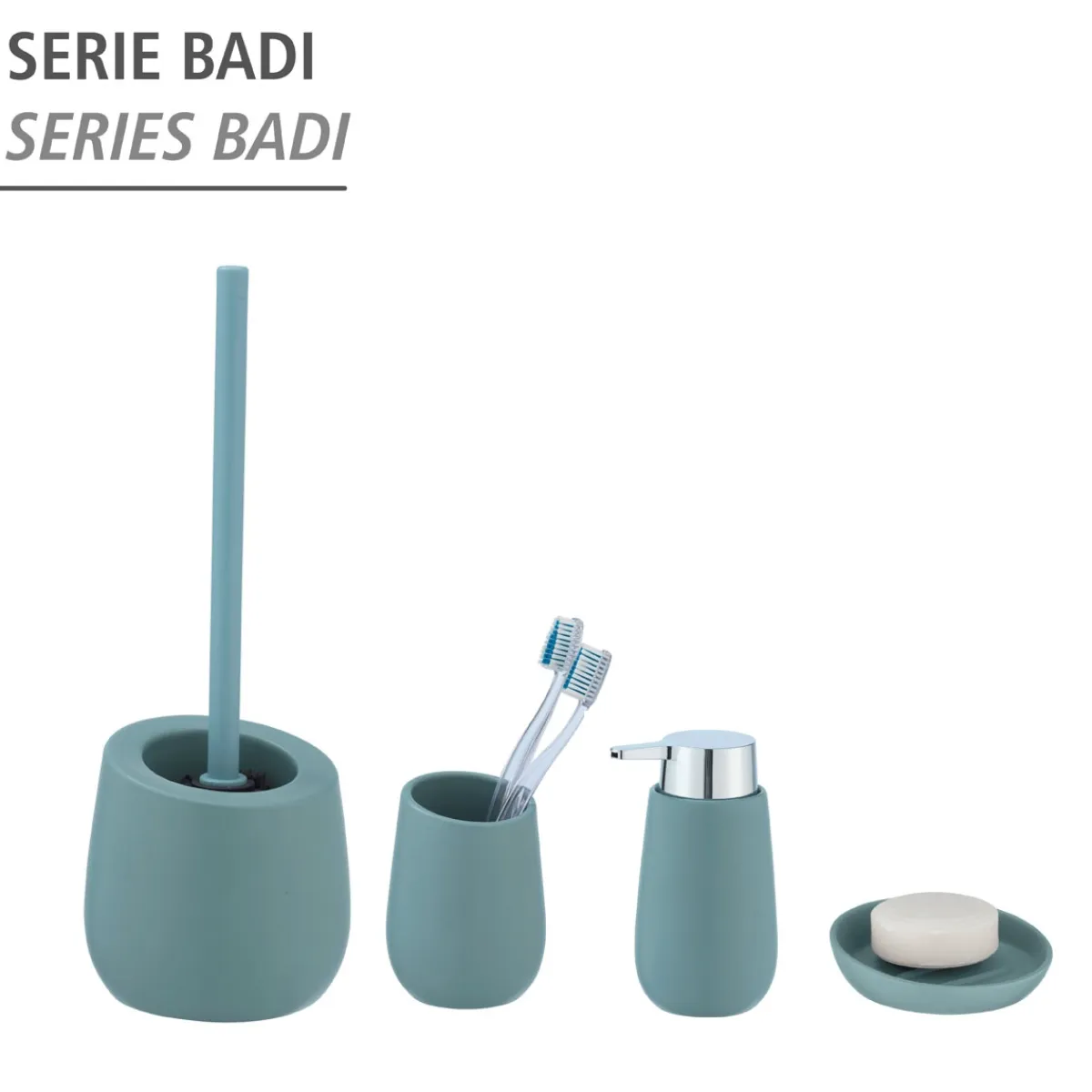 Wenko WC-Garnitur Badi Blaugrau Keramik WC-Bürstenhalter