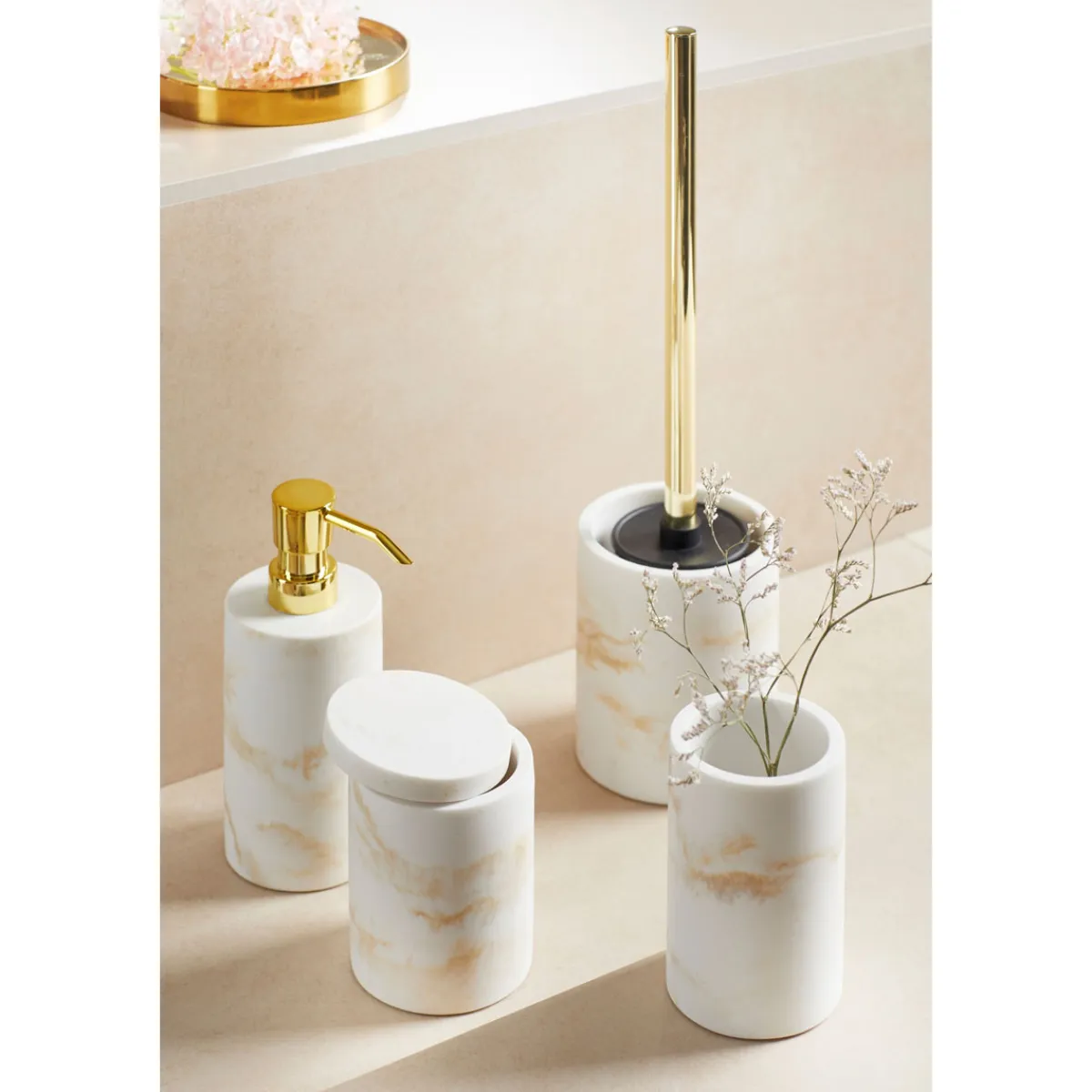 Die Wenko Odos WC-Garnitur ist die perfekte Wahl für alle, die eine stilvolle und praktische Lösung für ihr Badezimmer suchen. Mit ihrem eleganten Marmor-Design und der robusten Polyresin-Konstruktion ist sie nicht nur ein Blickfang, sondern auch äußerst langlebig.