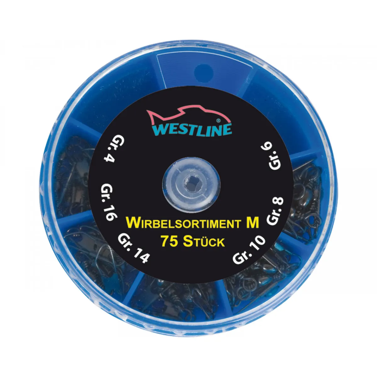 Mit dem Westline Wirbelsortiment in Größe M haben Sie immer den passenden Wirbel zur Hand. Die praktische Spenderdose enthält insgesamt 75 Stück in verschiedenen Größen und eignet sich perfekt für Angler, die flexibel bleiben möchten.
