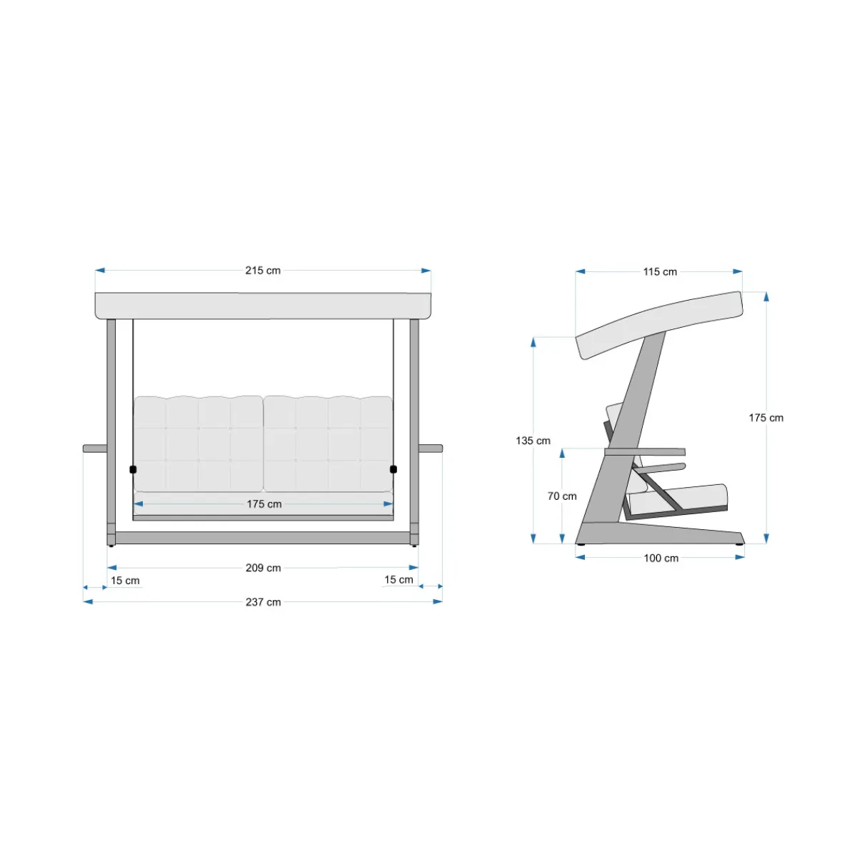 Westmann Holz Hollywoodschaukel Viva 2400 Anthrazit 237x115x175 cm Style trifft auf einladende Gemütlichkeit: Die Westmann Hollywoodschaukel Viva 2400 ist aus robustem Massivholz gefertigt und punktet mit einer modernen Konstruktion sowie bequemen Polstern. Mit der ansprechenden Hollywoodschaukel setzt du einen gekonnten Akzent in deinem Garten! Die Highlights auf einen Blick: * Modernes Design: Optisch ansprechende & stabile Konstruktion * Nordisches Fichtenholz: Langlebig und umweltfreundlich * Langlebiger Holzschutz durch 2 Schichten Holzschutzfarbe (Tauchverfahren). * Pflegeleichter & widerstandsfähiger Stoff: Wasser- & schmutzabweisender Polyester 240 g/m² UV-Schutz 80 + * Kissenbezug und Sonnendach sind bei 30° waschbar * Robustes Hauptaufhängungs- und Trägermaterial: Metallteile sind pulverbeschichtet * Maximale Traglast von 300 kg 3 Personen * Schaukelmodul kann fixiert werden Design. Nachhaltigkeit. Qualität! Ein ansprechendes Design alleine macht noch kein perfektes Produkt — deshalb punktet die Hollywoodschaukel Viva 2400 neben der ansprechenden Optik mit weiteren Benefits: Das Holz zeichnet sich durch eine hervorragende Umweltbilanz sowie beeindruckende Langlebigkeit aus. Der Polyesterstoff ist wasser- sowie schmutzabweisend und bietet mit einem UV-Schutzfaktor von 80 + ausreichend Schutz vor schädlichen UV-Strahlen. Dank der zweifachen Schicht Holzschutzfarbe auf Wasserbasis ist das Holz zusätzlich vor Witterungseinflüssen geschützt. Dein neuer Lieblingsplatz im Freien! Nimm Platz auf deinem neuen Lieblingsmöbel, schließ die Augen und lass dich sanft hin- und herschaukeln. Mit der Hollywoodschaukel Viva 2400 von Westmann wertest du deinen Garten auf und kannst gleichzeitig entspannte Stunden im Freien genießen!