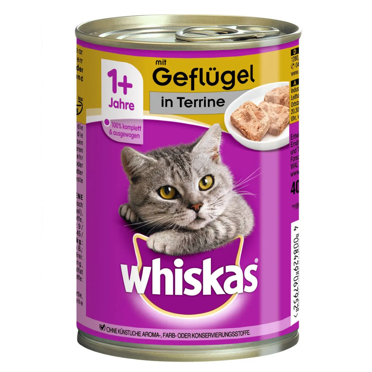 Eine Katze (4kg) benötigt 1/3 Dose und 30g Trockennahrung oder 2/3 Dose täglich (208 kcal). 77 kcal / 100g.
