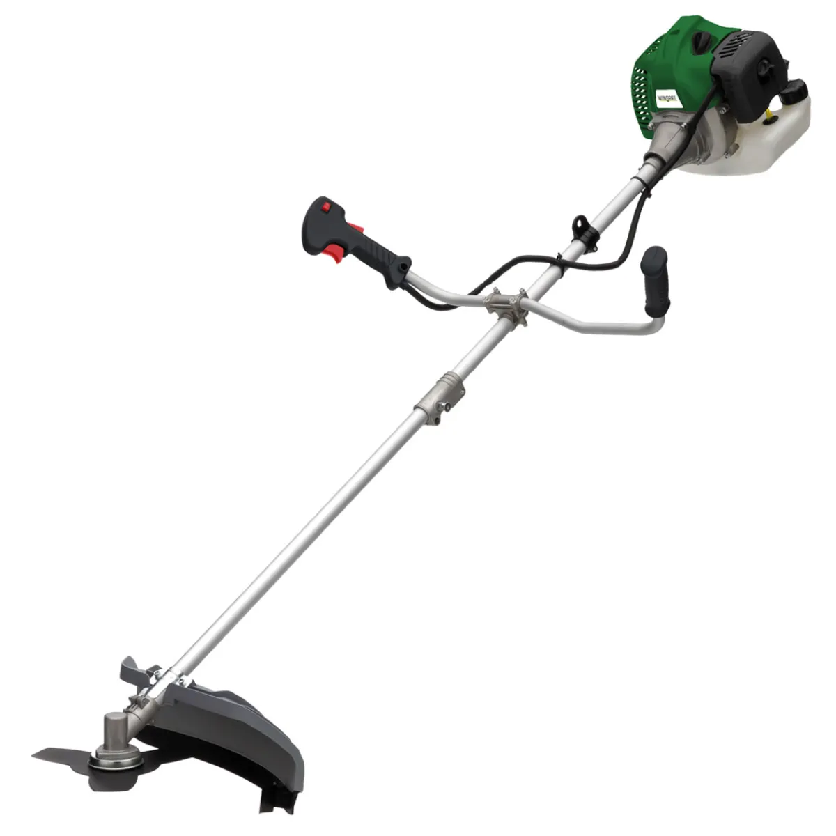 Durchzugsstarker Wingart Benzin Freischneider mit 1,25 kW (1,7 PS), 42,7 cm3 Hubraum zum Trimmen von Rasen, höheren Gräsern und leichtem Gestrüpp im, für Rasenmäher unzugänglichem, Gelände. Mit dem 3-Zahn-Messer können höhere Gräser und leichtes Gestrüpp geschnitten werden. Der mitgelieferte Fadenschneidkopf schneidet Gras, trimmt die Kanten und putzt die Ecken aus. Leichtstartsystem, Elektronische Zündung, Primer und Choke für einen sicheren Start. Doppelt kugelgelagerte Kurbelwelle und verchromter Zylinder für eine lange Lebensdauer, Werkzeugloser Luftfilterwechsel. Doppelfaden-Tippautomatik-Schneidsystem mit ca. 2 x 2,0 m Nylonfaden / 2,4 mm und einem Schnittkreis von 42 cm bei Spulenanwendung und 25,5 cm bei Messeranwendung. Geteiltes Rohr mit Schnellverschluss für platzsparenden Transport und Lagerung. Verstellbarer Aluminium-Griff. inkl. Profi-Schultergurt