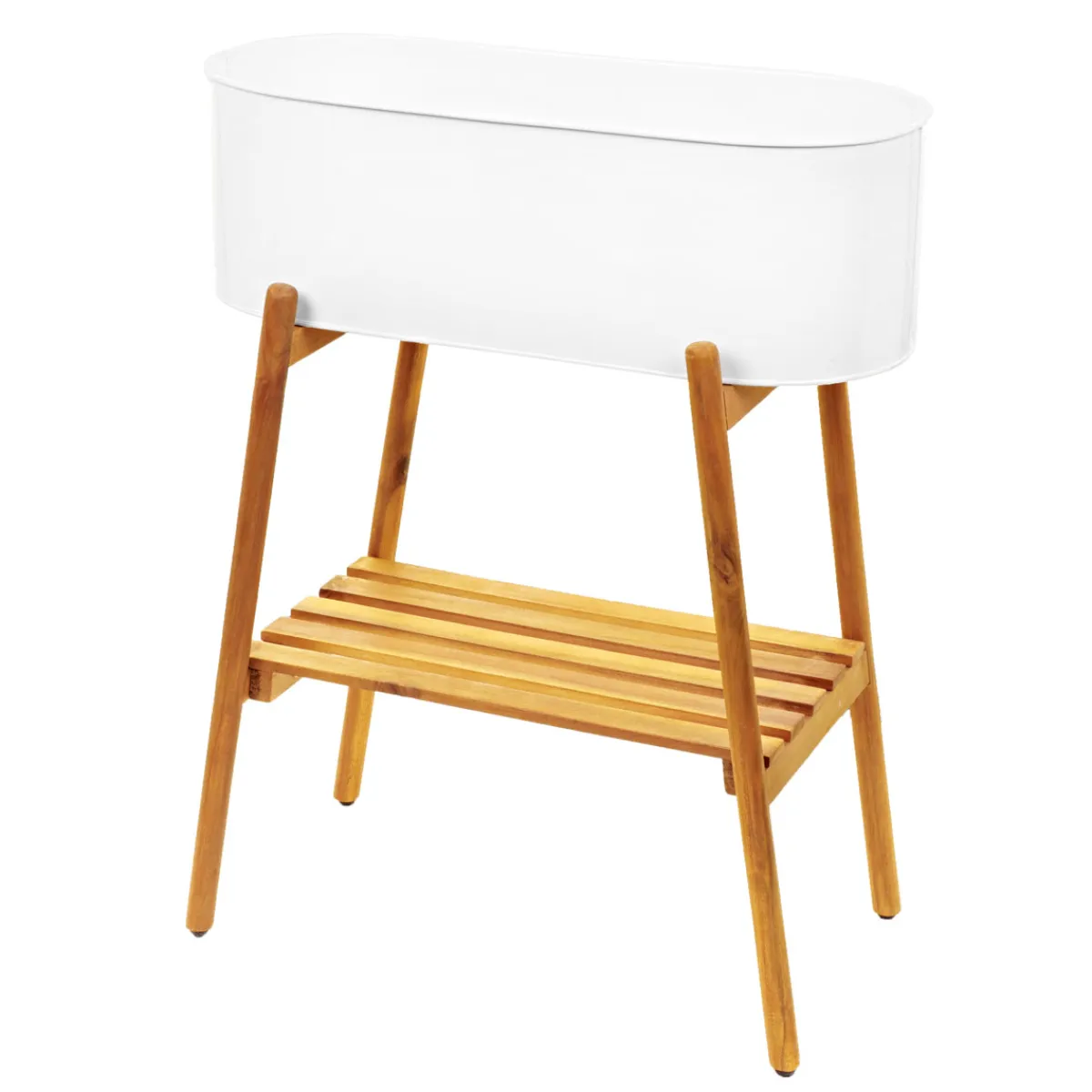 Hochbeet in weiß, Akazienholz/pulverbeschichtetes Zink, mit praktischen Nivellierfüßen zum Ausgleich von Bodenunebenheiten.