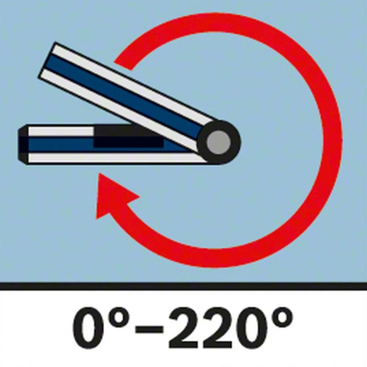 - Messbereich: 0-220° mit einer Schenkellänge von 40cm