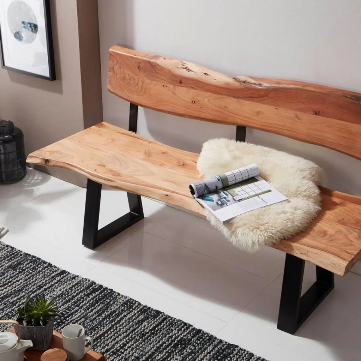 | Material: | Sitzfläche und Rückenlehne: Akazie Massivholz, Gestell: Eisen, schwarz lackiert |