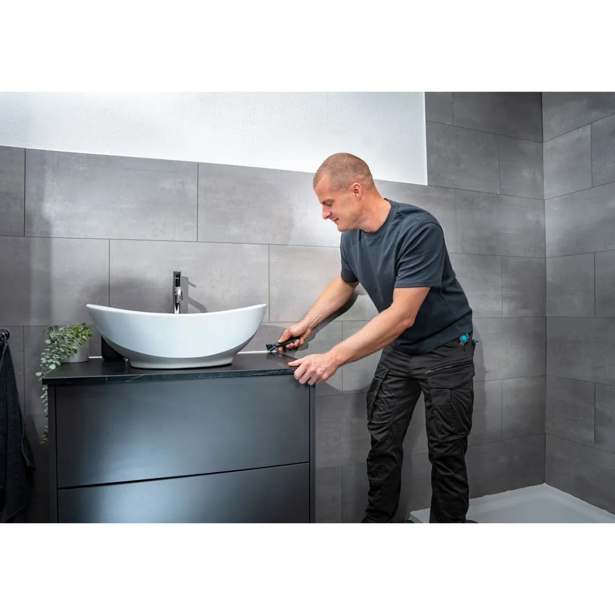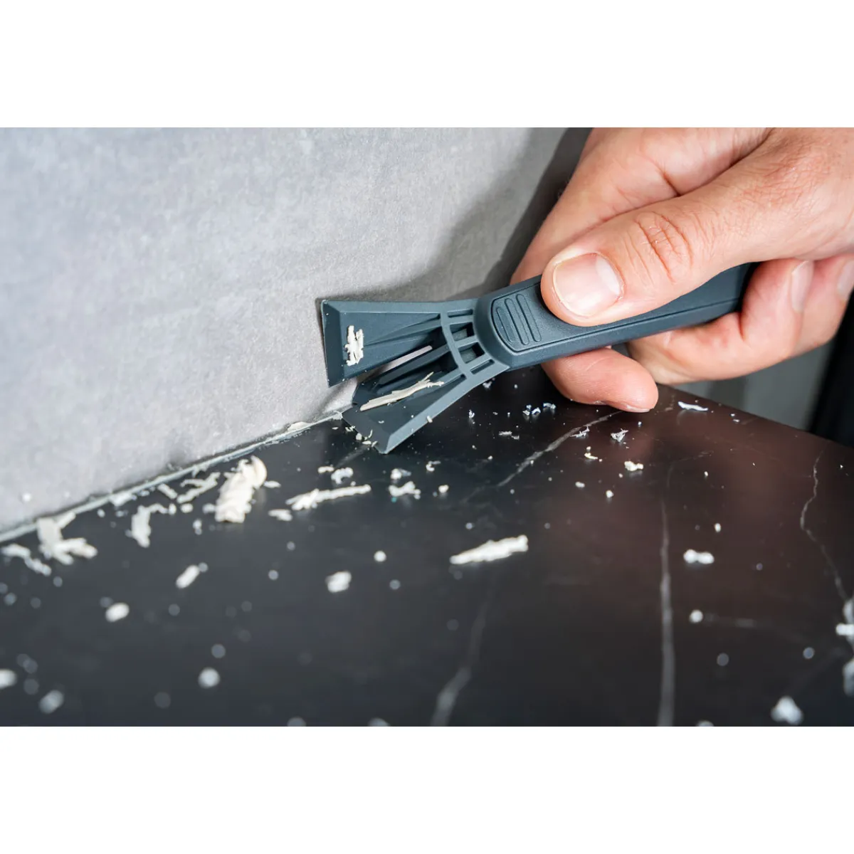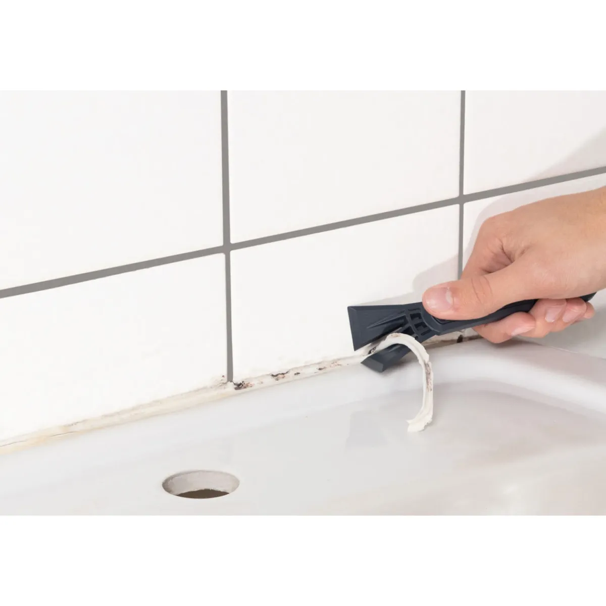 2 angefaste Kanten erleichtern das gründliche Entfernen von Silikon und Acryl an Fliesen und Keramik entlang der Seiten
