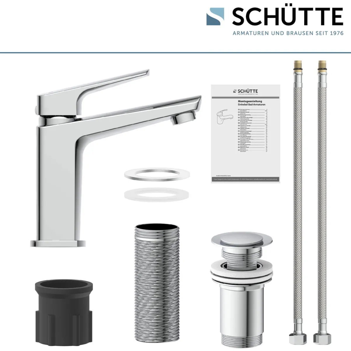 - Vollständiges Montageset mit hochwertigen, flexiblen Anschlussschläuchen an das Hauswassersystem