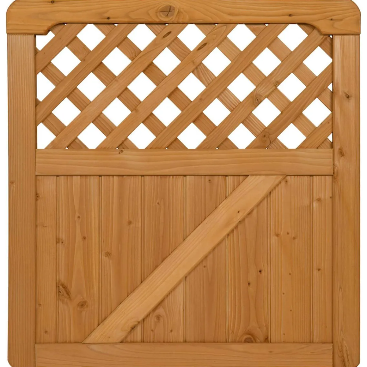 Die Mainau Zaunpforte überzeugt nicht nur durch ihre hochwertige Verarbeitung aus Douglasie-Holz, sondern auch durch ihr ansprechendes Design. Der Kirschbaum-Farbton fügt sich perfekt in jede Außenlandschaft ein und verleiht Ihrem Grundstück eine natürliche Note. Mit einer Größe von 90 x 95 cm bietet sie ausreichend Platz für den Durchgang zu Ihrem Garten oder Ihrer Terrasse. Überzeugen Sie sich selbst von der Qualität und dem Design dieser zauberhaften Pforte!