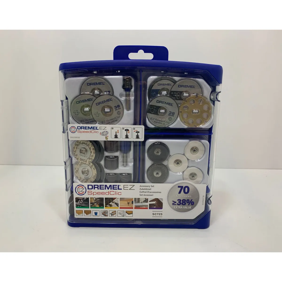 Wenn Sie auf der Suche nach einem hochwertigen und umfangreichen Zubehörset für Ihre Schleifarbeiten sind, dann ist das Dremel Zubehörset 725 EZ SpeedClic genau das Richtige für Sie. Mit insgesamt 70 Teilen und einer praktischen Aufbewahrungsbox haben Sie alles griffbereit zur Hand. Überzeugen Sie sich selbst von der Qualität dieses Sets!
